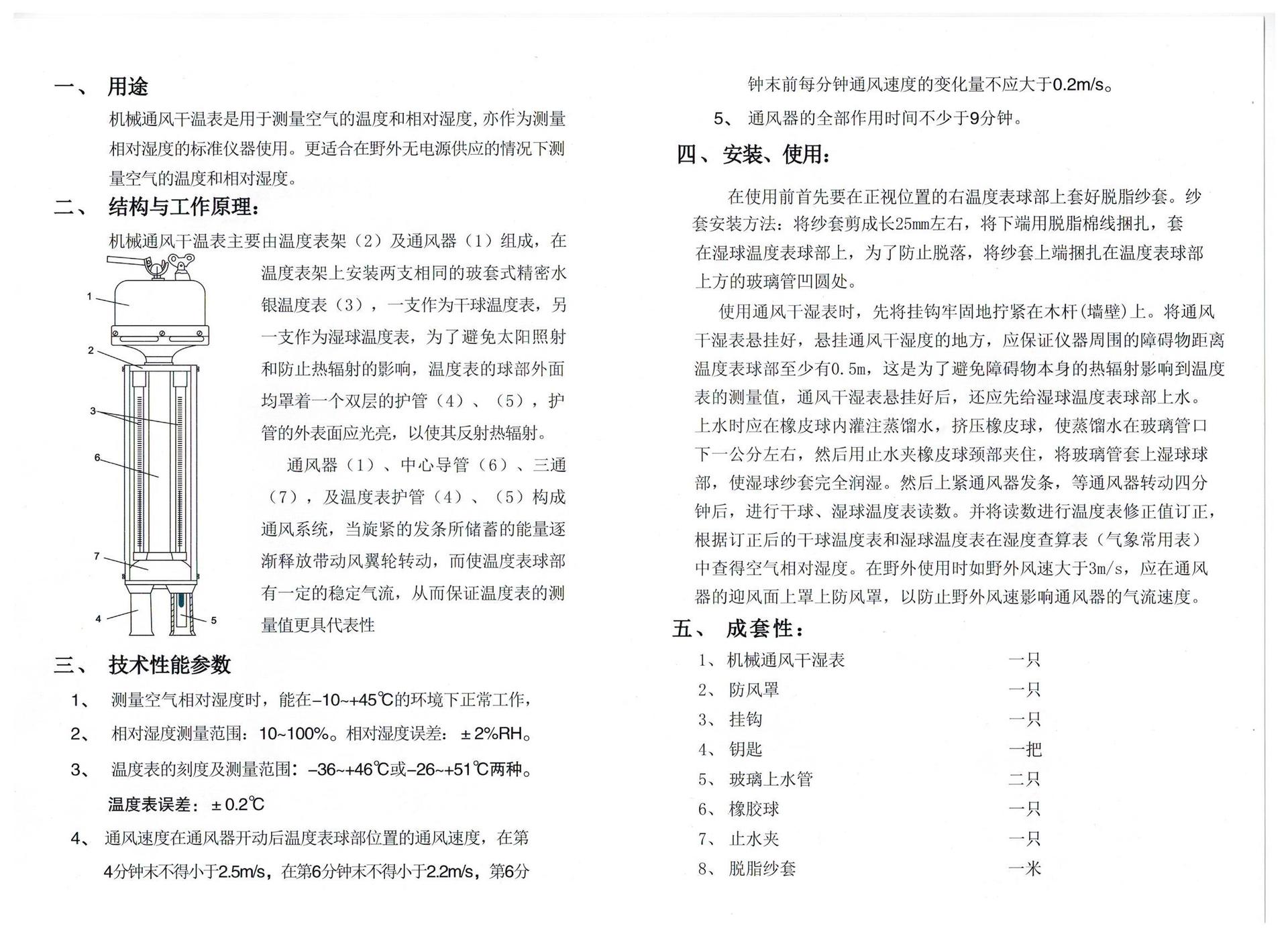 机械通风干湿表是用于测量空气的温度和相对湿度,亦作为测量相对湿度的标准仪器使用。更适合在野外无电源供应的情况下测量空气的温度和相对湿度。测量空气相对湿度时,1,能在一10~﹢45℃的环境下正常工作,2,相对湿度测量范围10~100%